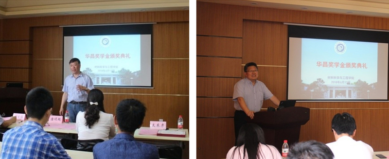 最后,刘坐镇分享了他的学习工作经历,表示材料的发展需要跨界,学科交叉十分重要,希望大家能用开放的视角多学习各学科知识。此外,他介绍了华昌聚合物有限公司60年来的发展历程,表示该项奖学金是公司在高校设立的第一个奖学金,至今已举办三届,希望今后能进一步加强与学校、学院各方面的交流与合作。