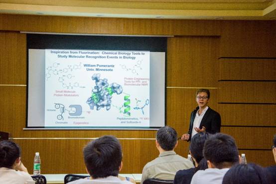 刘润辉教授邀请,明尼苏达大学William Pomerantz教授来校访问并做了题为“Inspiration from Fluorination: Chemical Biology Approaches to Probe Molecular Recognition Events in Biology”的学术报告。