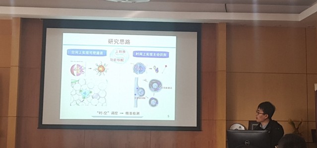 会上,李乐乐研究员首先生动地介绍了原位探测细胞和活体内分析物的化学测量技术,以及对生命分析科学的发展和疾病诊疗的重要意义。细胞和活体化学测量的挑战之一在于时-空可控精准生物检测及疾病诊疗,对此,他提出的一个主要策略是利用上转换纳米粒子作为能量传感器,通过近红外光实现生物成像和生物传感功能的精细调控。随后,他还介绍了在金属-DNA纳米结构用于核酸精准递送方面的最新研究成果。此外,他还和同学们分享了自己的科研经验,并对生物检测和疾病诊疗领域的前沿进行了展望。