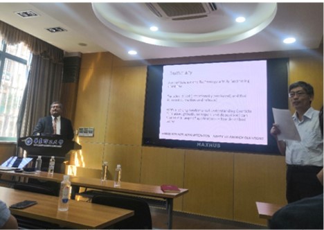 Pratim Biswas教授向师生们介绍了气溶胶科学与工程中的基础知识,反应工程原理以及在气溶胶反应器中如何进行尺寸、形态和组成的严格控制,讨论了其在环境、生物、医药等方面的应用。