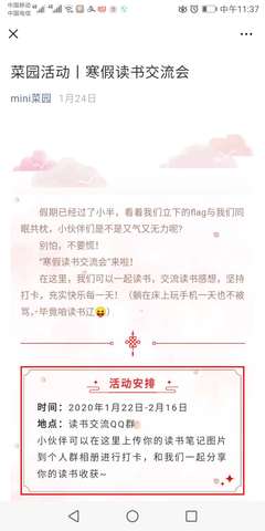 疫情期间,学生会开展了一系列“空中主题活动”。团学组织发出倡议书,号召全体学生科学防控,坚定信心,为打赢疫情攻坚战贡献自己的力量;团学组织骨干发起“武汉加油”手稿接力;征集各类书画稿作品,倡导大家做清朗网络的发声者;1月22日起,学院学生会开启了读书“云”打卡活动,倡导同学们在居家防“疫”期间,通过阅读经典收获更多感悟与成长。在一期的70多位参与者中,他们及时参与打卡活动,还认真做好读书笔记并进行“空中”分享。