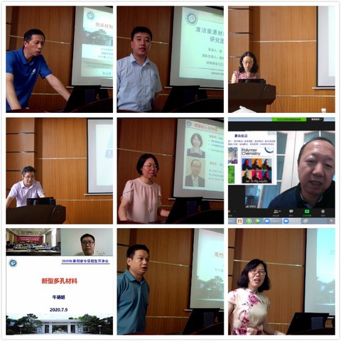 研究生招生负责人陈亚琴对同学们普遍关心的招生政策进行了详细解读,并线上回答同学们的各种提问。随后,上海市先进材料重点实验室王立权副教授,低维材料化学研究室牛德超副教授,材料研究所所长胡爱国教授,超细材料制备与应用教育部重点实验室朱以华教授,教育部医用生物材料工程研究中心屈雪教授,先进树脂复合材料研究室万里强副教授,新型清洁能源材料研究室侯宇副教授,特种玻璃与光电子材料研究室曾惠丹教授分别介绍了团队研究方向、导师队伍、学术成果、学生培养、就业等情况。