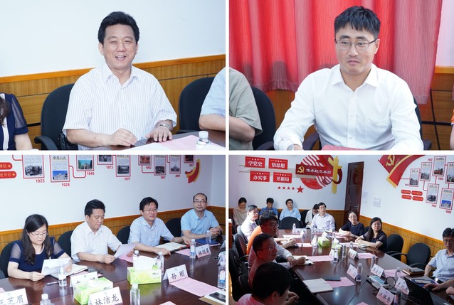 党委书记袁媛,院长、党委副书记林绍梁,党委副书记戴诚安,院长助理袁双龙,学院退休教授、孙刚校友导师郑安呐及学院教师李欣欣、汪济奎、张玲、管涌、夏浙安、危大福等参加会议。会议由袁媛主持。