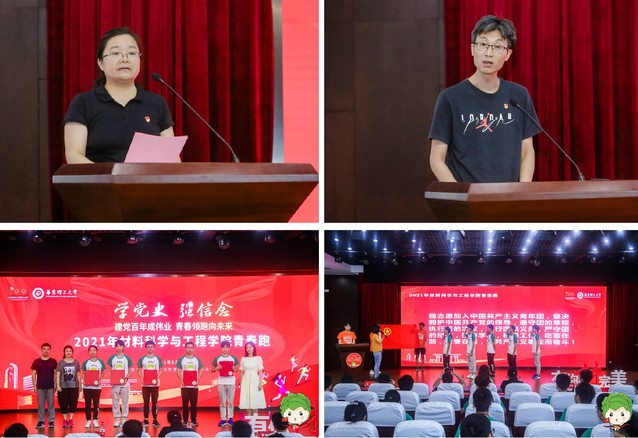 学院党委副书记戴诚安向在场师生介绍了本次青春跑活动的详细内容。学院5位新团员代表进行了入团宣誓仪式,并由奉贤区柘林镇团委书记张超逸、校团委书记侯宇以及学院党委副书记苏建玲为他们送上入团纪念品。