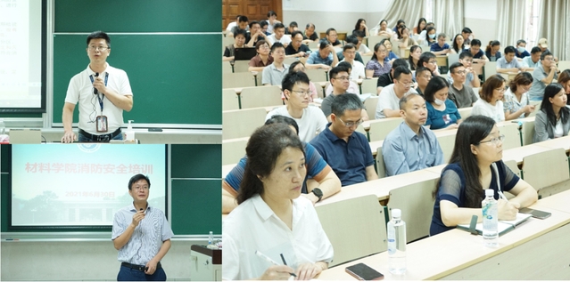 6月30日上午,学院为全体教职工举办了消防安全讲座、应急疏散演练、灭火演练等活动。在教四102室,校保卫处段凯洋老师通过真实案例视频向大家讲述了火灾发生后的严重后果,深入剖析火灾发生的原因,以血淋淋的事故事实给大家敲响了消防安全警钟;同时,就实验室防火、用电用气,应急处理、逃生技巧等知识进行详细讲解。