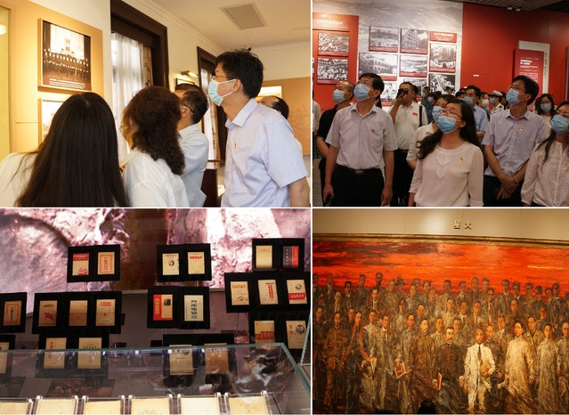 下午,学院党政班子来到太平湖畔的中共一大纪念馆参观。红色起点,朴素而庄重。进入纪念馆厚重的大门,犹如走入了一百年前“伟大的开端”,展厅内“步步有景,步步有故事”。《共产党宣言》72种版本全部展出,分别讲述翻译宣言、出版宣言、守护宣言三个篇章。大家通过观看学习资料、视频短片、听取现场讲解等,了解建党故事,致敬百年党史,感悟初心使命,回顾百年来中国共产党团结带领中国人民开辟的伟大道路、创造的伟大事业、取得的伟大成就。