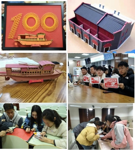 入党积极分子分11个小组开展活动,大家充分发挥动手能力,在制作手工作品的过程中回忆革命先辈们的光辉事迹。第1组、第4组和第10组在党史学习教育的过程中萌生了制作“中共一大会址”模型、“红船”模型和剪纸窗花的想法,通过拼接制作模型,学习开天辟地、敢为人先的红色精神。
