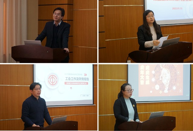 学院工会主席陈涛作2021年学院工会工作报告、财务报告。从落实民主管理、践行民主决策,强化思想引领、提升综合素质,打造品牌项目、助推青教成长,营造和谐氛围、维护合法权益,硬件软件齐抓、提升服务能力,合规使用经费、确保用之于民六个方面进行介绍,并讲解了福利费新政。