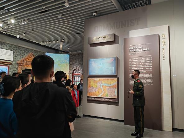 讲解员向大家介绍中国共产党的历史