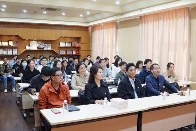 党委书记袁媛,党委副书记兼纪委书记苏建玲,副院长胡彦杰、顾金楼、江浩及党支部书记、内设机构负责人、师生代表等40余人参会。