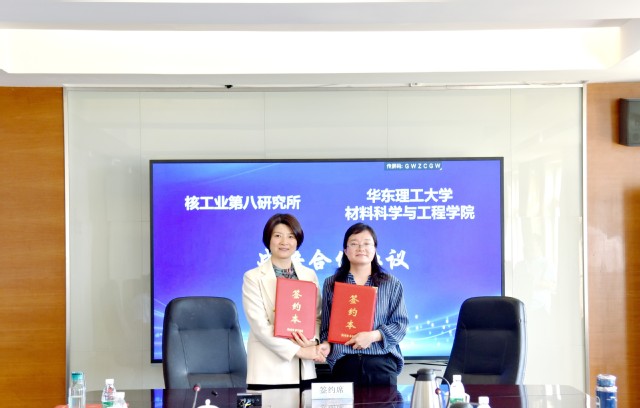 党委书记袁媛,学院教师姜海波、鲁宁宁、陈灵带领研究生走访上海中核八所科技有限公司(以下简称“中核八所”)。中核八所党委副书记、纪委书记、工会主席周莉,所长助理、复合材料技术中心主任沈伟,复合材料技术中心副主任、党支部书记王海燕,有机材料技术中心副主任芦武刚,有机材料技术中心总工程师杭颂,科技信息部主管吴肖萍,经营管理部专员竺肖泉出席会议。会上,双方签署战略合作协议和技术开发合同。会议由周莉主持。