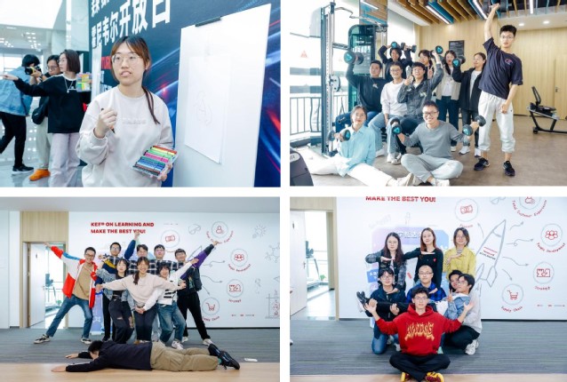 职业分享会上,学长学姐们从职业发展选择、张家港生活感受、职业成长经历等各个方面分享了自己的看法,同学们与学长学姐进行了深入的交流与探讨,开拓专业视野。随后,同学们以小组为单位进行团队任务合作,在研发中心寻找四个打卡点位进行合照以及完成你画我猜等趣味活动。