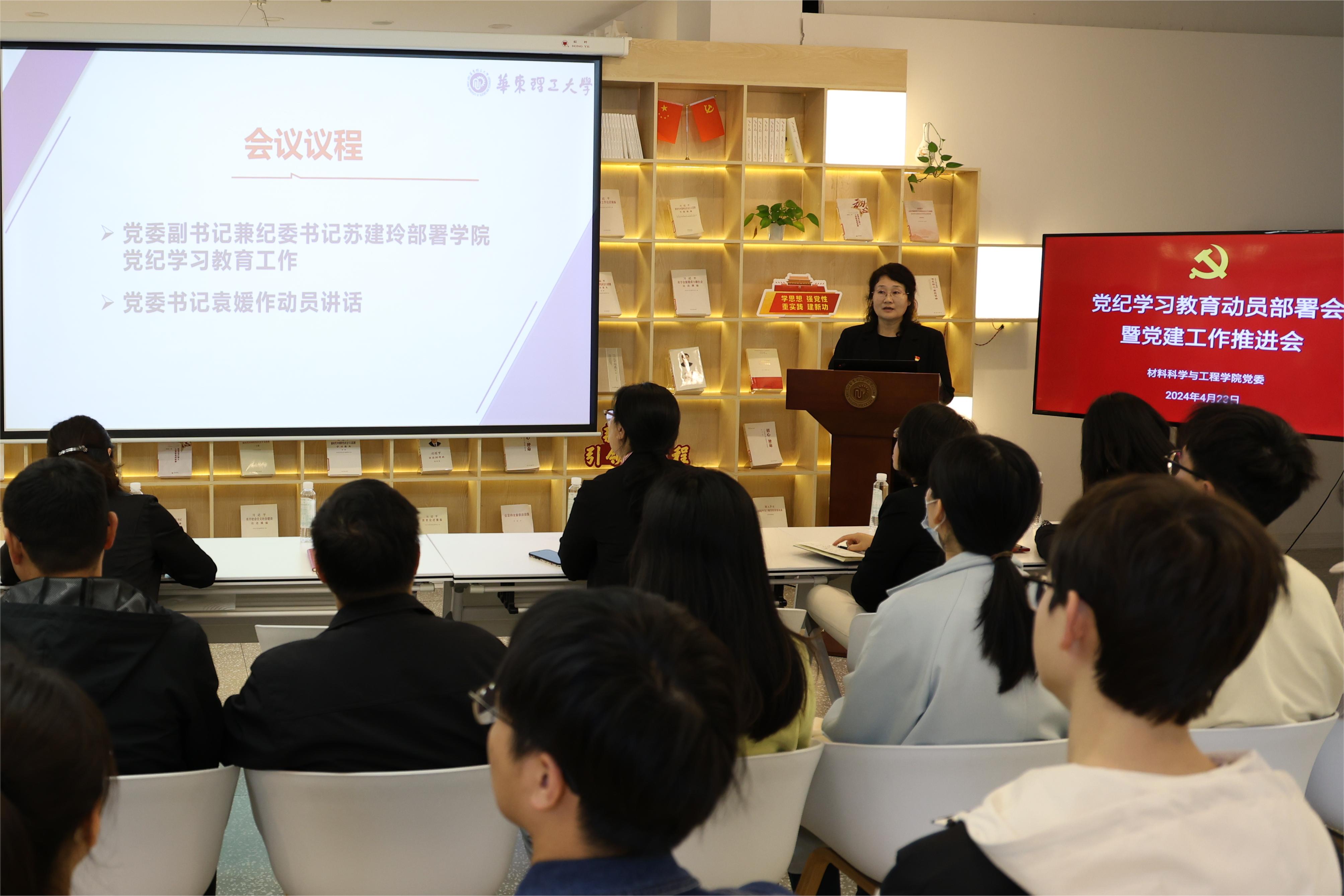 会议学习了中共中央办公厅印发的《关于在全党开展党纪学习教育的通知》精神,传达学习了学校党委有关党纪学习教育的部署要求,并对学院党纪学习教育的实施方案进行详细解读。
