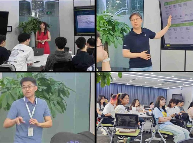 在新突思的会议室,人力资源总监Jaime首先向同学们的到来表示欢迎,并对新突思公司的发展背景、业务情况和公司发展情况等做了详细介绍。随后,硬件技术部总监着重讲解了半导体、芯片以及电子信息的相关概念和产业,并对芯片行业的市场格局与未来发展做出了分析,让同学们对半导体有了整体上的宏观了解。软件技术部总监为同学们介绍了新突思公司在技术及其应用上的优势和发展,为同学们展示了一家研究型企业的独特魅力。