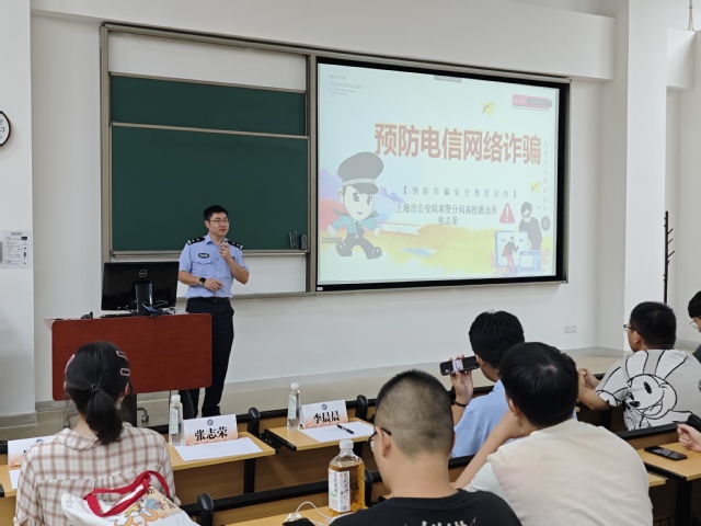 2024级研究生新生校史学习和安全培训会在奉贤校区D200举行。上海市公安局奉贤分局高校派出所张志荣警官和校安全环保办公室李晨晨受邀作辅导讲座。会议由研究生辅导员娄梦蝶主持。