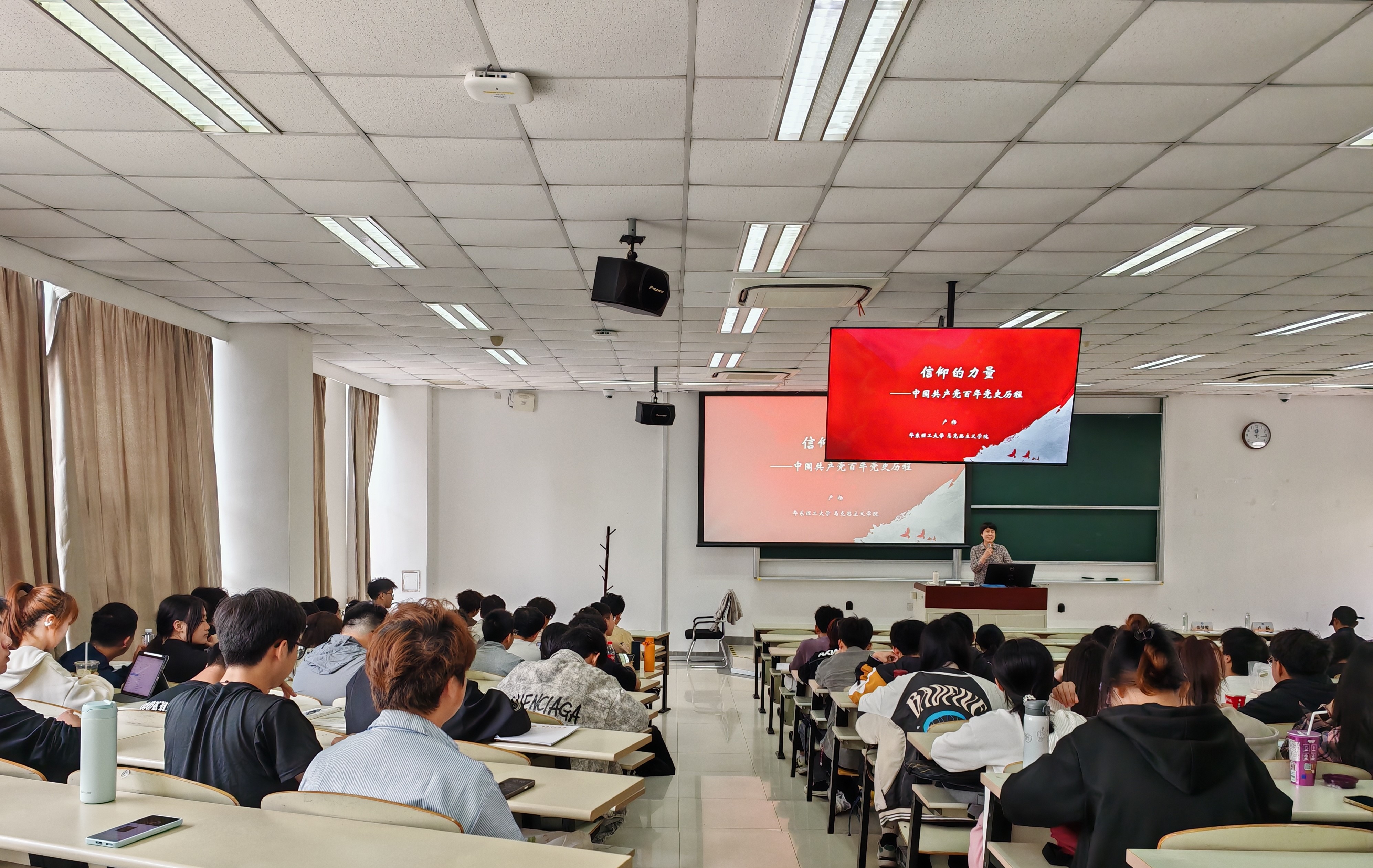 在奉贤教学楼A103举办入党积极分子培训班专题党课“信仰的力量—中国共产党百年党史历程”,本次党课邀请马克思主义学院副院长卢杨作为主讲人,本研120余位入党积极分子和30余位入团积极分子参加学习。