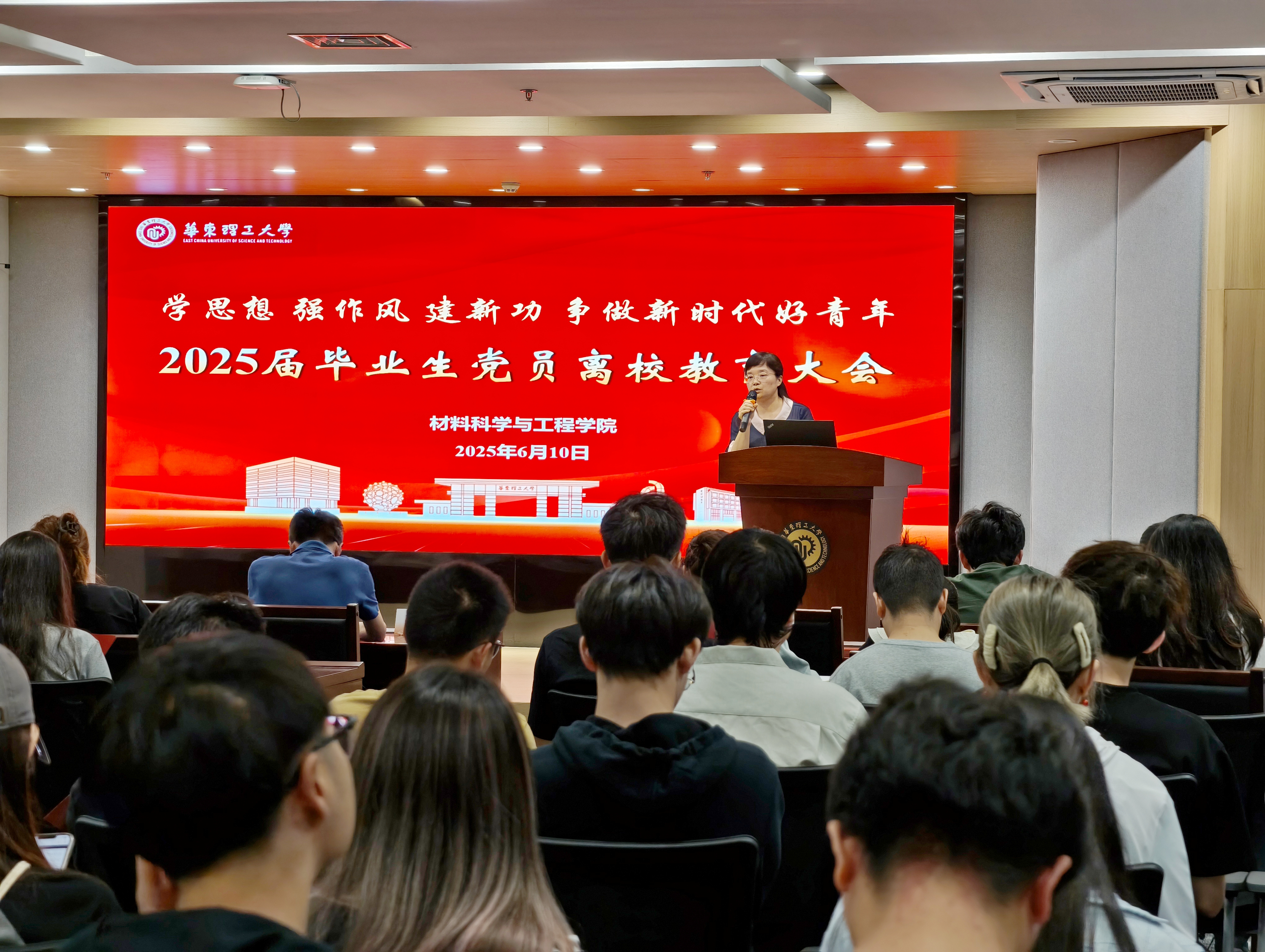 为推进深入贯彻中央八项规定精神学习教育走深走实,引导毕业生党员坚定理想信念、强化使命担当,610日,动漫之家 在徐汇校区先进材料大楼526会议室召开2025届毕业生党员离校教育大会。学院党委书记袁媛、党委副书记兼纪委书记苏建玲、党委副书记戴诚安、专职组织员、辅导员及全体毕业生党员参会。会议由戴诚安主持。