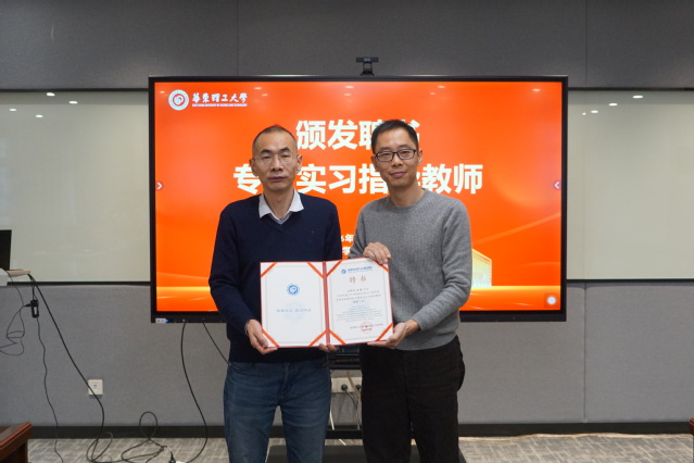 顾金楼为方亮校友颁发了专业实习指导教师聘书。